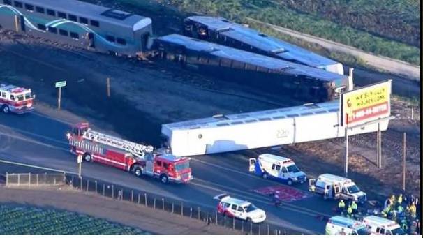 Washington.-Tres vagones de un tren suburbano de Metrolink en el sur de California se descarrilaron y volcaron después de chocar con un camión en la vía.