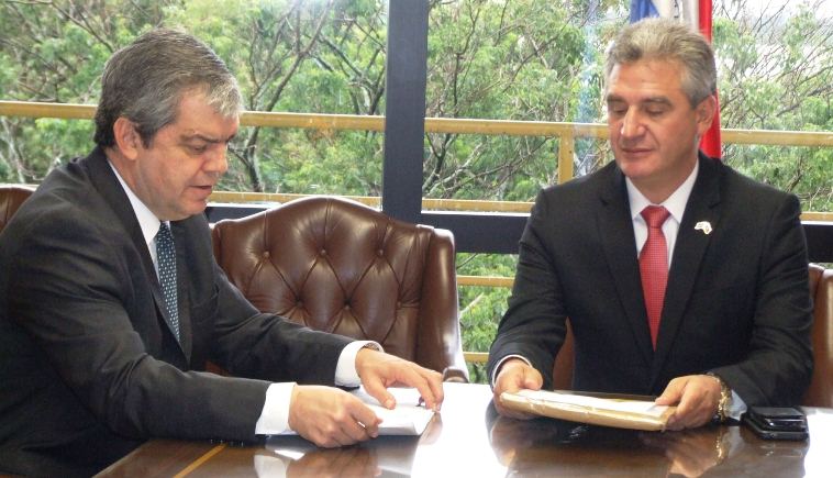 Asunción, IP.- El presidente del Consejo de la Magistratura, Enrique Riera entregó este jueves oficialmente a la Cámara de Senadores la terna de candidatos a ministro de la Corte Suprema de Justicia.