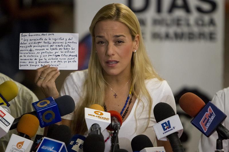 Caracas.- Lilian Tintori, esposa del opositor venezolano preso y en huelga de hambre Leopoldo López, llamó este jueves a sus conciudadanos a respaldar con una vigilia este sábado las peticiones hechas al Gobierno por el líder de Voluntad Popular (VP), así como al resto de «presos políticos» y simpatizantes en ayuno.