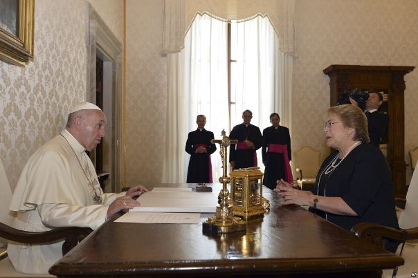 Ciudad del Vaticano.- El papa Francisco conversó hoy durante 47 minutos con la presidenta de Chile, Michelle Bachelet, durante una audiencia privada que mantuvieron en el Vaticano.
