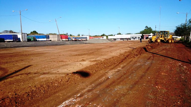Falcón, IP.- El Ministerio de Obras Públicas y Comunicaciones (MOPC) acelera los trabajos de mejoramiento en Puerto Falcón. En ese marco operarios de la firma Heisecke S.A se encuentran realizando la preparación de la base para la carpeta asfáltica donde serán instaladas las oficinas móviles de la Dirección General de Migraciones durante la visita del Papa Francisco.