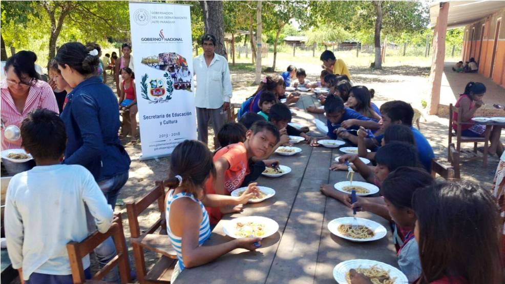 Asunción, IP.- Alumnos de las instituciones educativas del distrito de Carmelo Peralta, Chaco paraguayo, recibieron almuerzo escolar con alimentos frescos, en el marco del Programa impulsado por la Gobernación de Alto Paraguay.