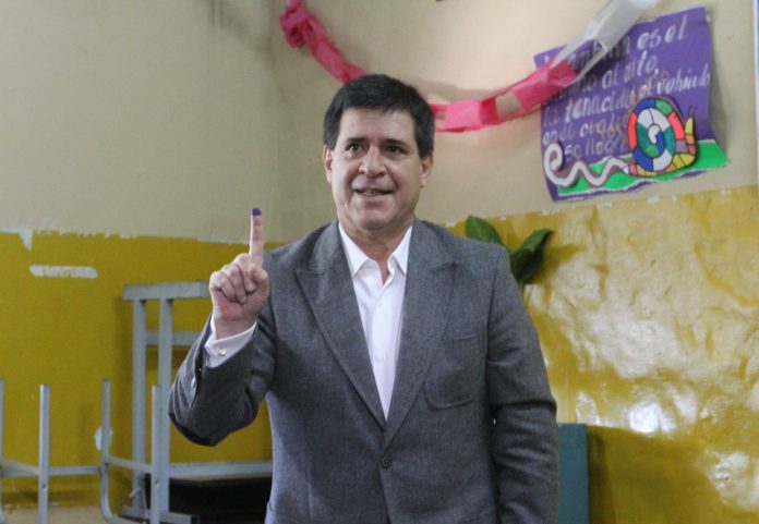Asunción, IP.- El presidente de la República Horacio Cartes emitió, a las 08:10 de este domingo, su voto en las elecciones internas donde el Partido Colorado elegirá autoridades partidarias y candidatos oficiales para las elecciones municipales de noviembre de este año. Instó a que este día sea una «fiesta cívica».