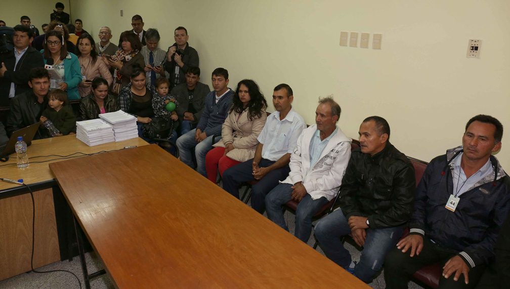 El Tribunal de Sentencia de Salto del Guairá integrado por Ramón Trinidad Zelaya, Benito González y Víctor Godoy resolvió suspender el juicio para poder cumplir con el procedimiento de notificación a los defensores públicos que deberán hacerse cargo de la defensa de los campesinos acusados.