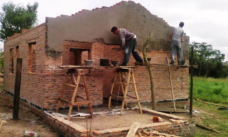 La empresa Pilar Constructora S.A de Caazapá, en el asentamiento de María Auxiliadora, del distrito de Moisés Bertoni,  está construyendo 99 viviendas con un avance de 3,01 por ciento.
