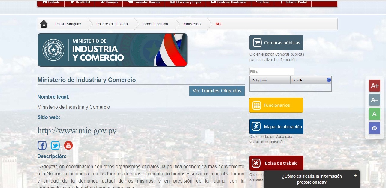 Asunción, IP.-  La presidencia de la República, a través de su «Portal Paraguay” sitúa al Ministerio de Industria y Comercio (MIC) en el primer lugar del ránking de visitas de la ciudadanía a su sitio web con casi 150.000 visitas.