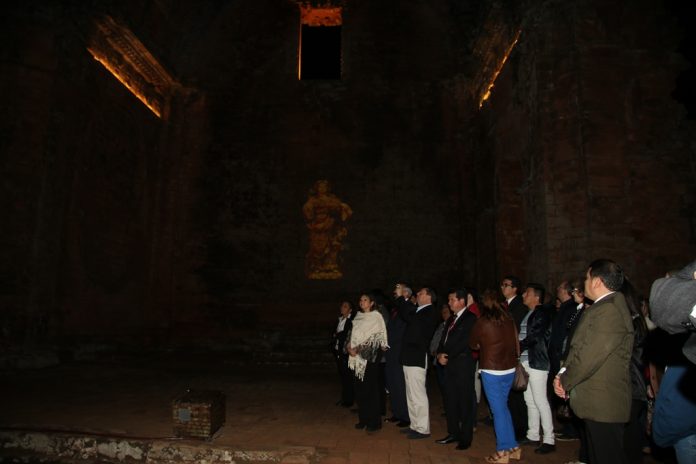 Santísima Trinidad del Paraná, IP.- Con la presencia de autoridades nacionales y ministros de Turismo de varios países, se realizó en la noche del sábado último, la puesta en Valor del Espectáculo de Luces y Sonidos de la Misión de Trinidad, declarada patrimonio mundial por la Unesco en el año 1993.