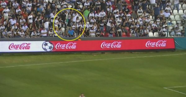 En material enviado a la fiscalía, se observa claramente a la persona que arrojó una botella al campo de juego donde disputaban un partido Olimpia -Sol de América.