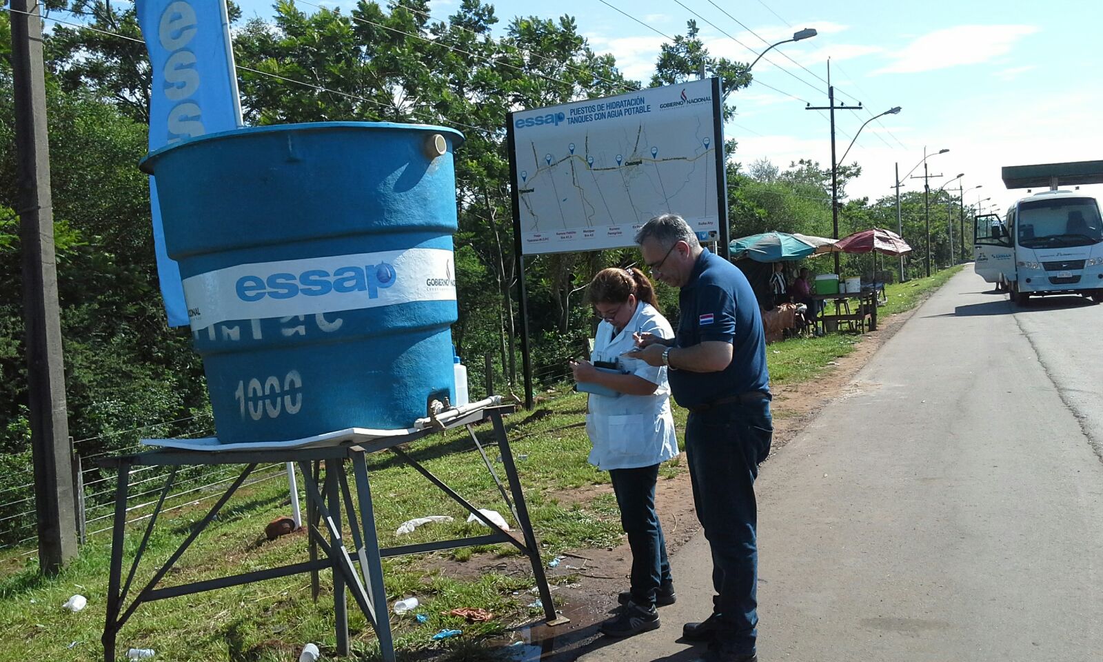Caacupé, IP.- El Ente Regulador de Servicios Sanitarios (Erssan) realizó inspecciones al azar en las bocas de provisión de agua para los peregrinantes de Caacupé constatando la calidad del mismo. El trayecto verificado incluyó puestos instalados en las ciudades de Capiatá, Itaugua, Ypacaraí, San Bernardino hasta Caacupé, así como el acceso desde Tobatí.