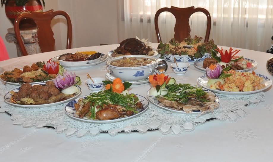 china 4Muchos de los platos que se preparan para esta ocasión se sirven debido a que son considerados como símbolos de buena suerte. Por ejemplo, los camarones representan abundancia, los nabos simbolizan el buen augurio, los vegetales verdes una buena cosecha, el pollo la riqueza, un pescado entero la unidad, etc.