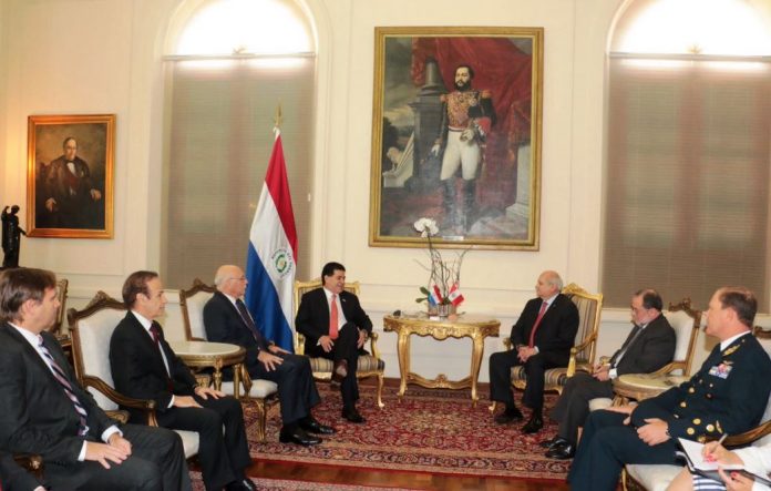 Asunción, IP.- Durante la visita realizada este jueves por el presidente del Consejo de Ministros de Perú, Pedro Cateriano Bellido, al presidente paraguayo Horacio Cartes, las altas autoridades expresaron su compromiso por afianzar la relación bilateral y trabajar para alcanzar un intercambio comercial más fluido entre ambos países.