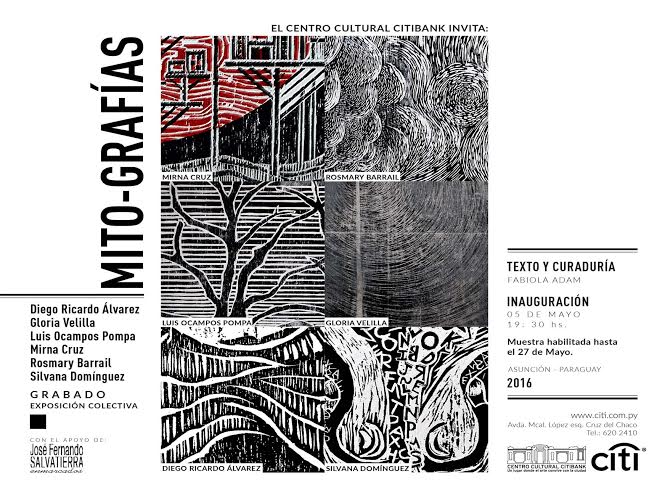 Asunción, IP.- El jueves 5 de mayo será la apertura de la muestra colectiva de grabados denominada “Mito-Grafías” que reunirá obras de los artistas visuales Gloria Velilla, Mirna Cruz, Silvana Domínguez, Luis Ocampos Pompa, Rosmary Barrail y Diego Ricardo Álvarez. Será a partir de las 19:30, en el Centro Cultural Citibank (CCC) de Asunción, Av. Mcal. López esquina Cruz del Chaco, con acceso libre y gratuito.
