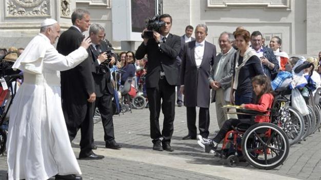 Roma.- Un momento muy especial se vivió este miércoles en la Plaza de San Pedro, Verónica Cantero Burroni, una niña argentina de 13 años, cuadriplégica, ganadora del “Premio Elsa Morante para jóvenes 2016” en Nápoles, pudo saludar al papa Francisco, que la abrazó y besó con gran calidez, la joven le regaló su libro, el quinto que escribe, dejándole una dedicatoria muy especial.