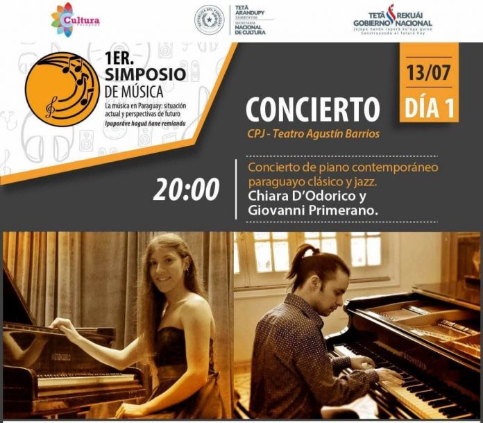 Asunción, IP.- Chiara D’Odorico y Giovanni Primerano ofrecerán un concierto de piano contemporáneo paraguayo clásico y jazz, este miércoles 13 de julio, a las 20:00, en el Teatro Agustín Pío Barrios del Centro Paraguayo Japonés, con entrada libre y gratuita.