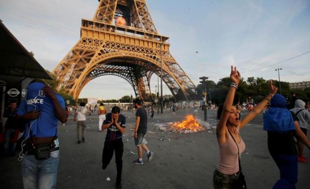 La mayor parte del medio centenar de detenciones que hubo anoche en París tuvo lugar en los alrededores de la zona de fans instalada en la Torre Eiffel.