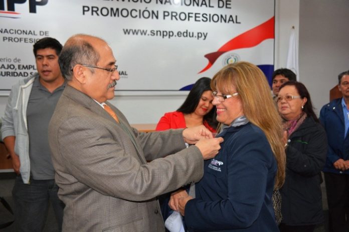 El ministro de Trabajo, Guillermo Sosa Flores, acompañado del director general del Servicio Nacional de Promoción Profesional (SNPP), Ramón Maciel Rojas,  participó del acto de despedida de los 20 instructores y 10 egresados del SNPP que fueron seleccionados para realizar capacitaciones profesionales en Italia y participar del Programa Pitágora Mundus.