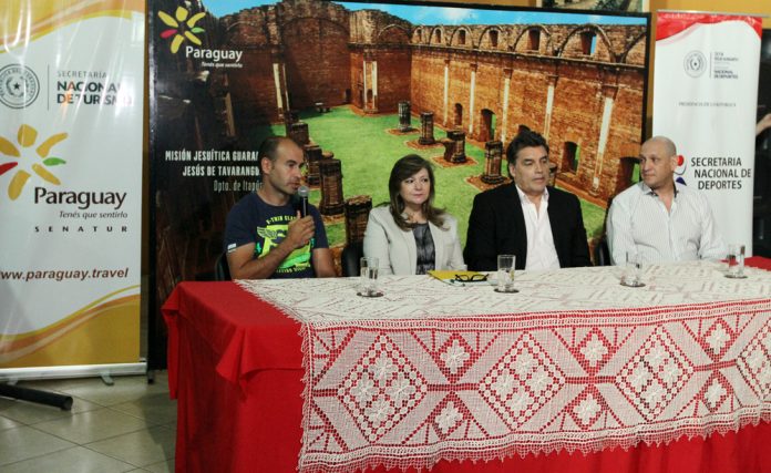 Asunción, IP.- Marcela Bacigalupo, ministra de la Secretaría Nacional de Turismo (Senatur); Víctor Pecci, ministro de la Secretaría Nacional de Deportes (SND); y Milciades Fretes, uno de los colaboradores para la organización del Dakar 2017; presentaron, este jueves, al piloto español Xavier Pons, quien será uno de los participantes de la competencia que tiene trascendencia mundial. El acto se desarrolló en el salón Turista Róga.