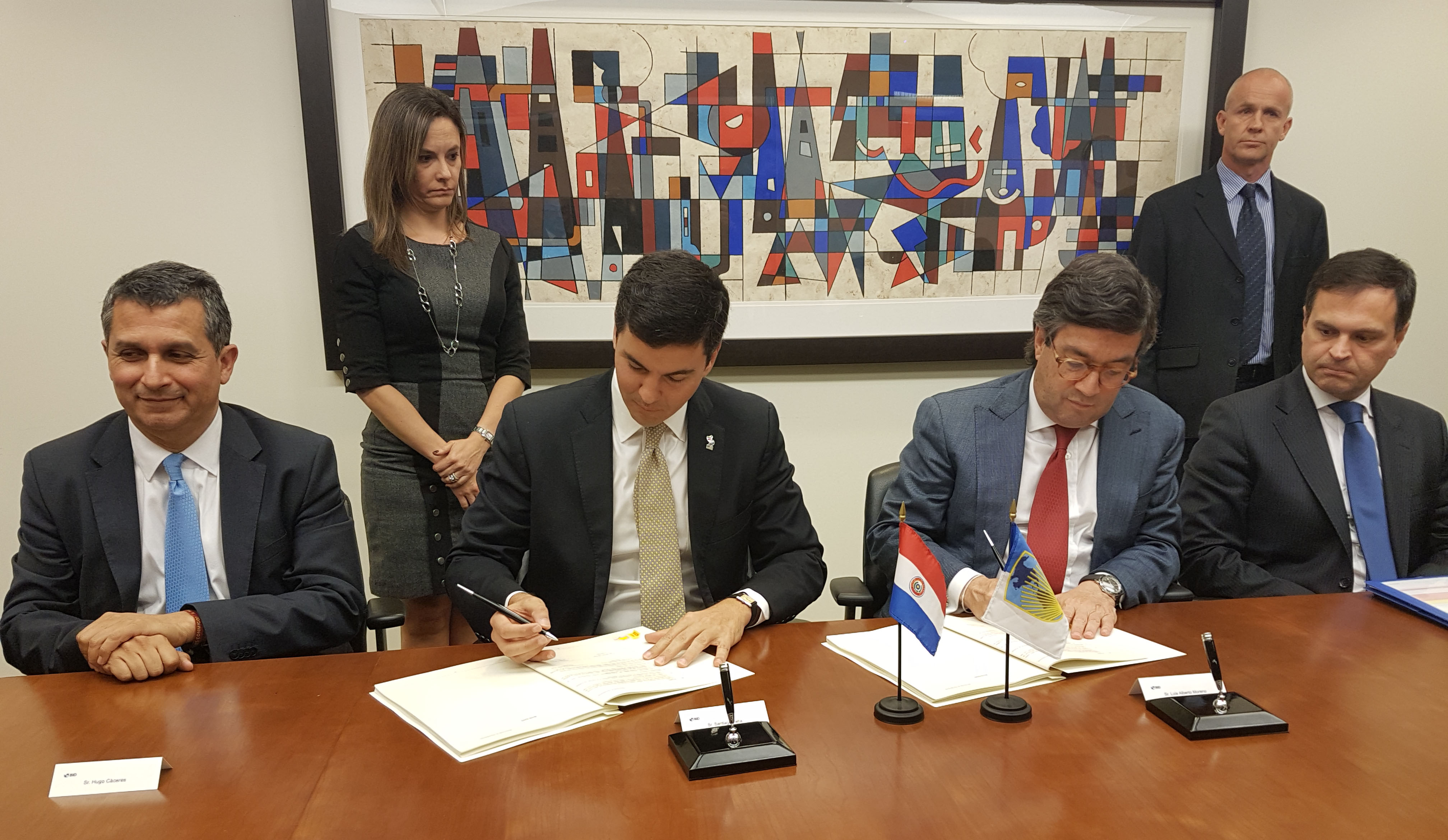 Asunción, IP.-El ministro de Hacienda, Santiago Peña Palacios, y el presidente del Banco Interamericano de Desarrollo (BID), Luis Alberto Moreno, firmaron un Memorando de Entendimiento en el marco de la próxima realización de la Asamblea de Gobernadores del BID y de la Corporación Interamericana de Inversiones (CII).