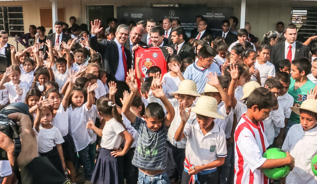 Retribuyó a los directivos de Royal Paraguay, Ricardo Tavarelli y Roque Santa Cruz, por el donativo y resaltó que las aulas construidas son de tecnología nueva, rápida y barata que no se puede desperdiciar ya que los niños no pueden esperar.