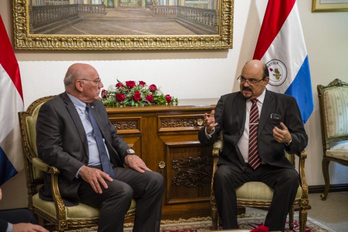 Loizaga, recibió en audiencia en el Palacio Benigno López, sede de la Cancillería Nacional, a Pintos Balbuena, del encuentro también participó el director de Organismos Internacionales, consejero Raúl Martínez.