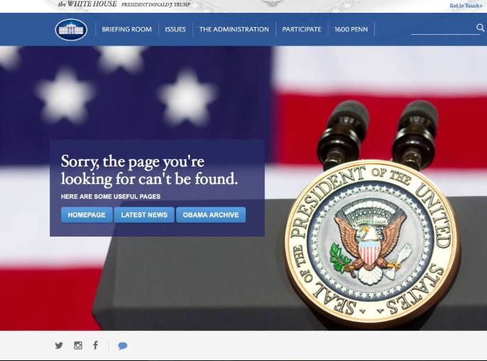 Al mediodía del viernes 20, mientras el recién investido Trump pronunciaba su discurso inaugural, la nueva Casa Blanca cambiaba rápidamente de manos, analógica y digitalmente. La cuenta de Twitter del presidente Obama pasó a ser la de Trump, y lo mismo sucedió con la página web de la Casa Blanca, que rápidamente colocó en portada una foto del nuevo mandatario, informa el País de España.