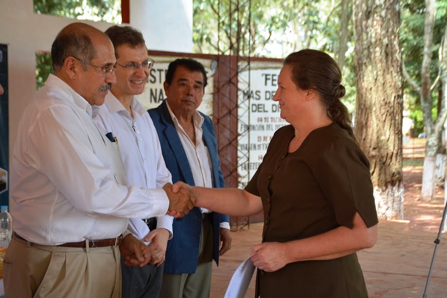 El acto de clausura de cursos y entrega de certificados se desarrolló en la Plaza “Los Pioneros”, de la ciudad de Natalio, con la presencia del ministro de ministro de Trabajo, Empleo y Seguridad Social (MTESS), Guillermo Sosa Flores, el director general del SNPP, Ramón Maciel Rojas, el intendente de Natalio, Ramón Schneider, el director de la filial de Yatytay del SNPP, Juan Montiel, así como otras autoridades locales e invitados especiales.