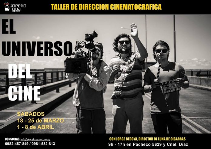 Asunción, IP.- Inicia el sábado 18 de marzo un taller de dirección cinematográfica a cargo del realizador Jorge Díaz de Bedoya. Las clases se desarrollarán a lo largo de 4 jornadas, los días 18 y 25 de marzo y 1 y 8 de abril, de 9:00 a 17:00m en el local de la productora Koreko Gua, Pacheco 5629 y Cnel. Díaz en Asunción.
