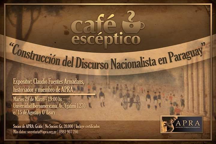 La primera actividad contará con la presencia del historiador y miembro de APRA, Claudio Fuentes Armadans, quien tendrá a su cargo el tema de “La construcción del discurso nacionalista en Paraguay”.