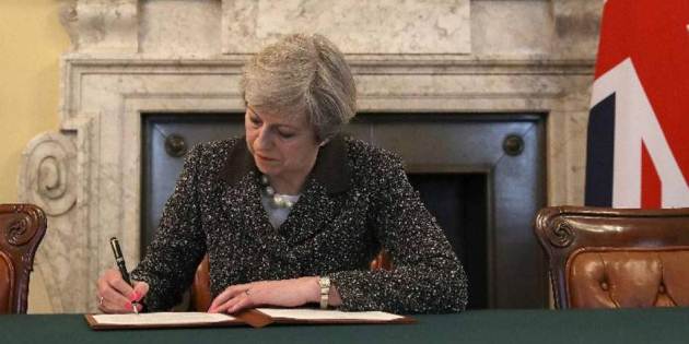 La misiva fue entregada a la vez que la primera ministra británica, Theresa May, se dirigía al Parlamento británico para informar a los diputados de la notificación a la UE de la voluntad de su país de salir del bloque.
