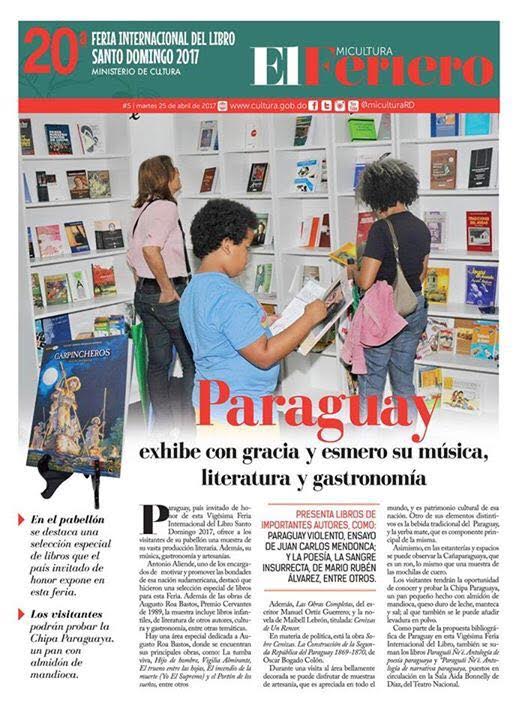 Asunción, IP.- El Ministerio de Cultura de República Dominicana celebra en un artículo de su página web las propuestas del pabellón de Paraguay, destinado a su producción literaria, en la Feria Internacional del Libro de Santo Domingo (FILSD), donde nuestro país es invitado de honor en la edición 2017.