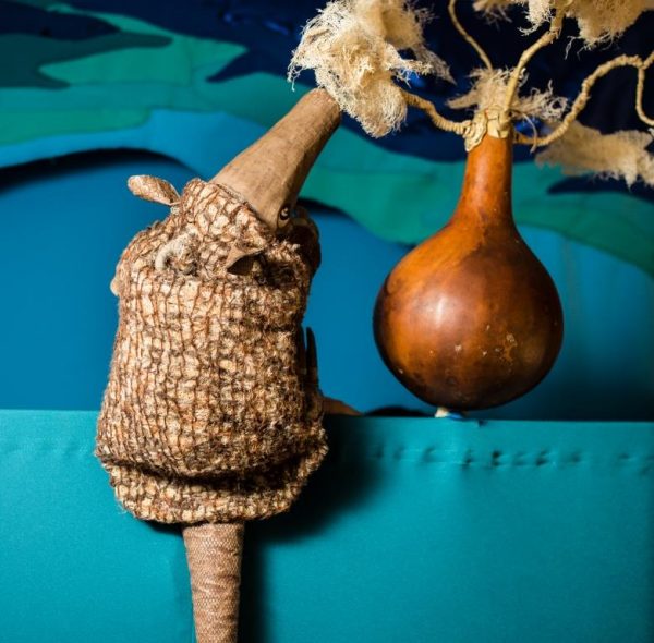 Elementos naturales utilizados en la elaboración de objetos de arte indígena son parte de la escenografía