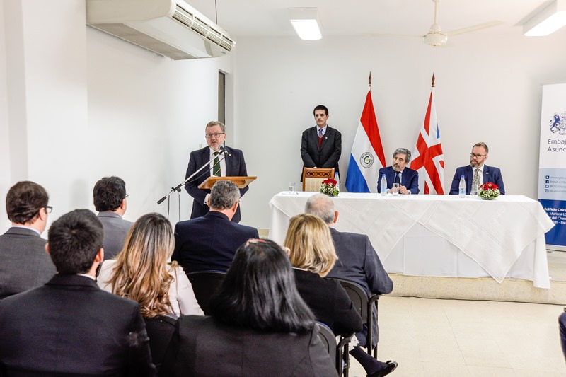 Mundell es el primer ministro del Gobierno británico en realizar una visita al Paraguay en 21 años. Durante su estadía, el representante del Reino Unido de Gran Bretaña dio una conferencia magistral sobre el programa “Global Britain”.