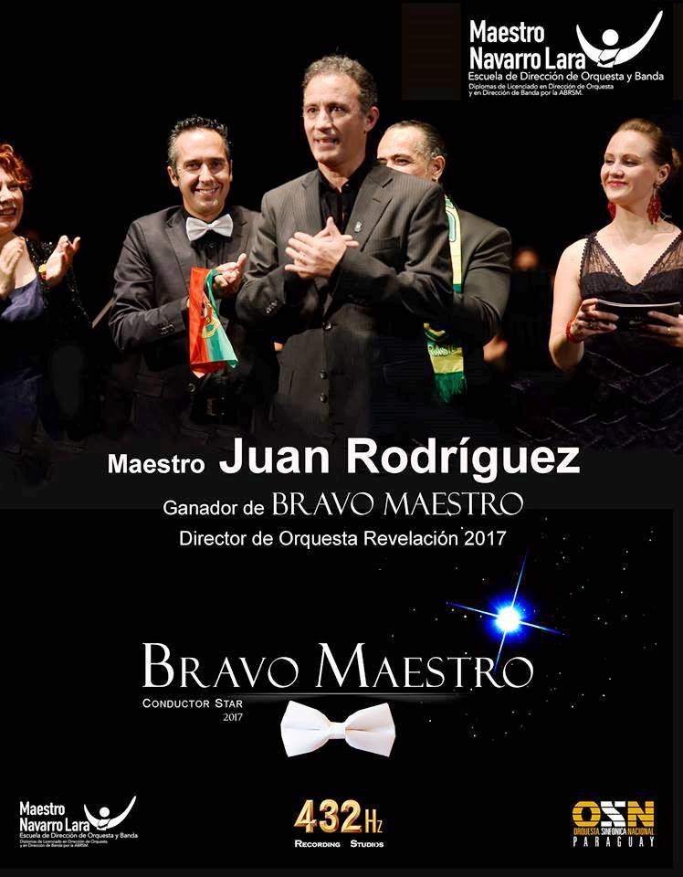Asunción, IP.- El maestro argentino Juan Rodríguez resultó ganador de “Bravo Maestro”, el primer reality de Directores de Orquesta, realizado por internet, que lo consagró como el “Director de Orquesta Revelación 2017”.