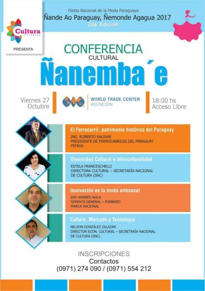 También el viernes a las 18:00, la directora general de Diversidad, Derechos y Procesos Culturales de la SNC, Estela Franceschelli, disertará sobre “Diversidad Cultural e Interculturalidad”; y el director de Economía Cultural de la SNC, Nelson González, expondrá acerca de la “Cultura, Mercado y Tecnología”; todo el marco de la “Conferencia Cultural Ñanemba’e”.