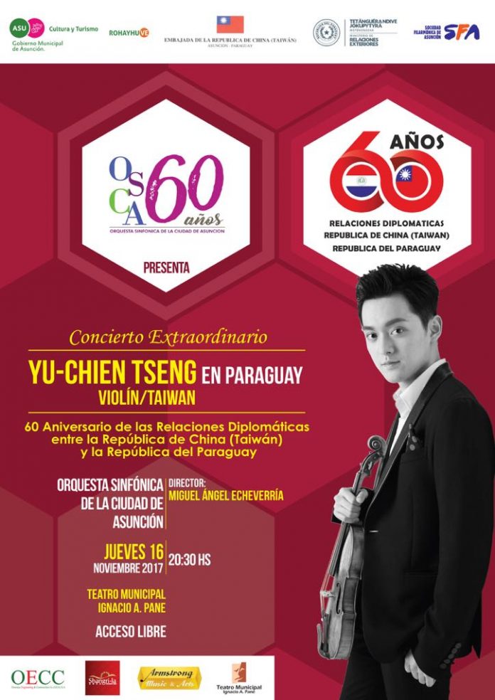 Asunción, IP.- La Embajada de la República de China-Taiwán invita al concierto al violinista taiwánes, Benny Yu-Chien Tseng, que presentará un concierto exclusivo en nuestro país, en su debut en América Latina, este jueves 16 de noviembre.