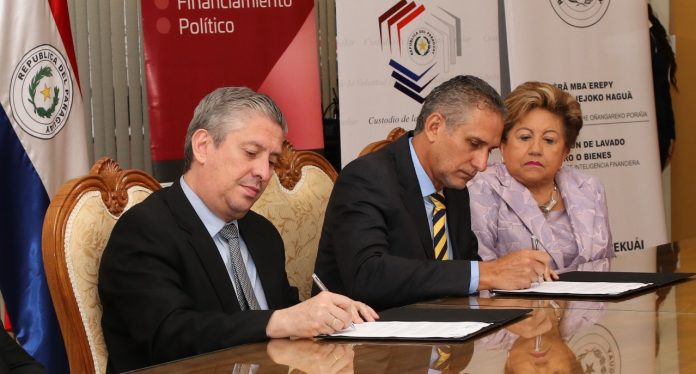 Asunción, IP.- Autoridades del Tribunal Superior de Justicia Electoral (TSJE) y de la Secretaría de Prevención de Lavado de Dinero o Bienes (Seprelad) firmaron este martes un convenio de cooperación a fin de facilitar el control y el cumplimiento del Reglamento del Financiamiento Político.