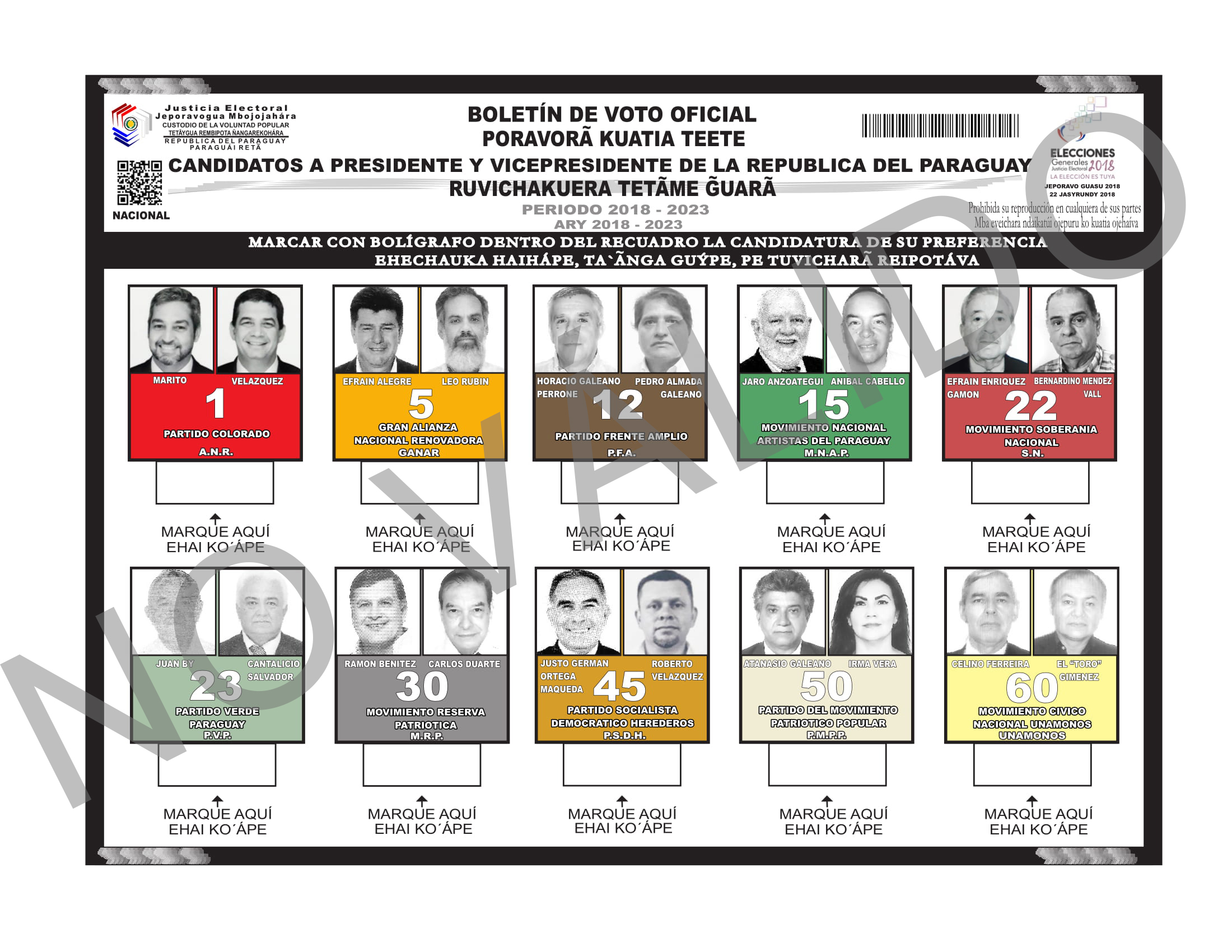 Asunción, IP.- El Tribunal Superior de Justicia Electoral (TSJE) publicó este domingo los modelos de boletines de votos, con los números y colores correspondientes de modo que la ciudadanía conozca las papeletas e identifique las candidaturas antes de acudir a las urnas el 22 de abril próximo.