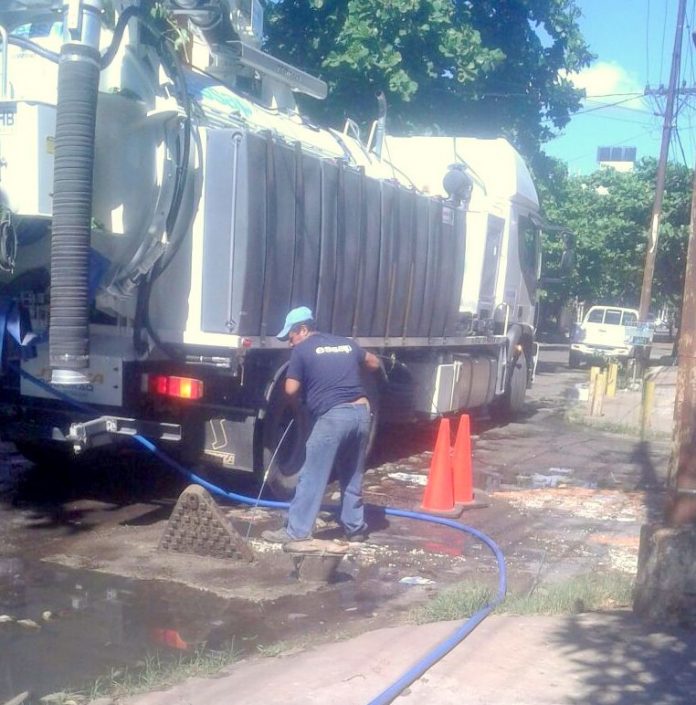 Asunción, IP.- Funcionarios de la Essap se constataron ante el colapso cloacal registrado en la vía pública, en el barrio Pinozá de Asunción, y apoyaron los trabajos de la Municipalidad de Asunción para solucionar el problema.