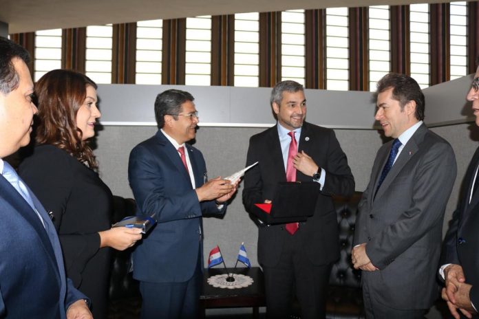 Asunción, IP.- El presidente Mario Abdo Benítez mantuvo un encuentro con el mandatario hondureño, Juan Orlando Hernández, en el que acordaron un mayor intercambio comercial entre ambos países.