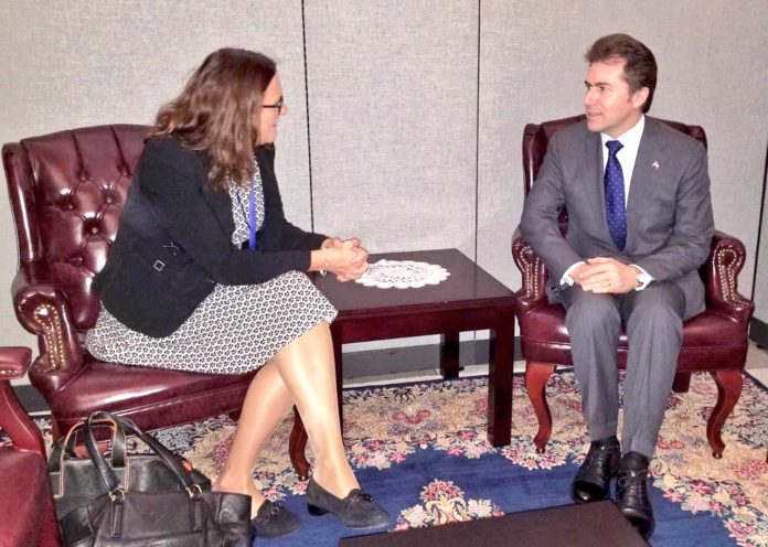 El encuentro tuvo lugar en la sede de las Naciones Unidas, en donde se encuentra la comitiva paraguaya, encabezada por el presidente Mario Abdo Benítez, en el marco del 73° periodo de sesiones de la Asamblea General de la referida organización.