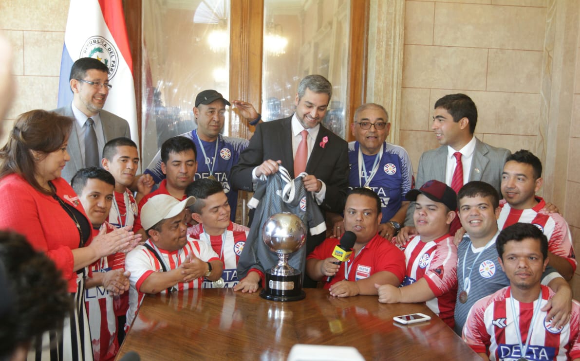 Asunción, IP.- El presidente de la República, Mario Abdo Benítez, recibió este martes a la Selección Albirroja de Talla Baja, que se consagró campeón de la Copa América de fútbol sala que se disputó en Buenos Aires, Argentina.