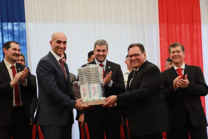 La entrega se realizó en el Parque Sanitario II, de Mariano Roque Alonso, y contó con la presencia del presidente de la República, Mario Abdo Benítez, del director general paraguayo de la Itaipú, José Alberto Alderete, y del ministro de Salud, Julio Mazzoleni.