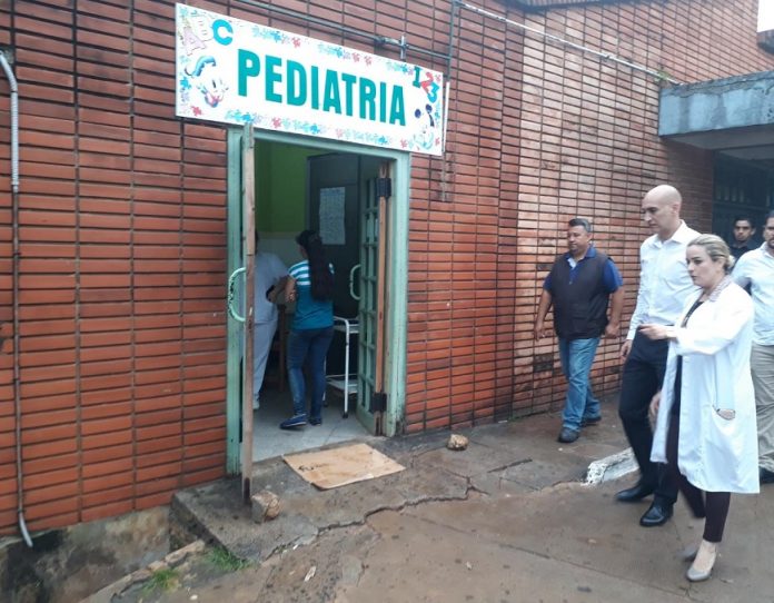 Asunción, IP.- El ministro de Salud, Julio Mazzoleni, visitó este lunes el Hospital General San Lorenzo, que se vio afectado por inundaciones luego de las intensas lluvias del viernes pasado.