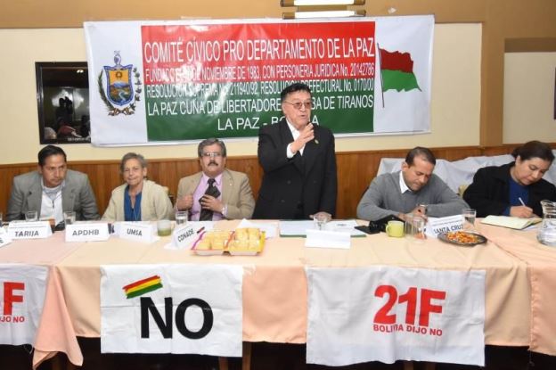 Esta medida es parte de las resoluciones de una reunión convocada por el Comité Cívico Pro Departamento de La Paz a la que asistieron representantes de partidos opositores, plataformas ciudadanas y comités cívicos de distintas regiones bolivianas. La huelga nacional de 24 horas está convocada para el próximo 21 de agosto, según las resoluciones leídas por el presidente del comité cívico de La Paz, Antonio Alarcón.
