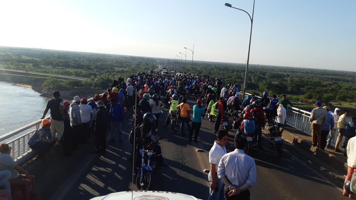 El asesor indicó que existen cientos de niños acompañando a los cerca de 500 indígenas que bloquearon el tránsito en el medio del Puente Remanso. La medida de fuerza inició aproximadamente a las 10:00 de este viernes.