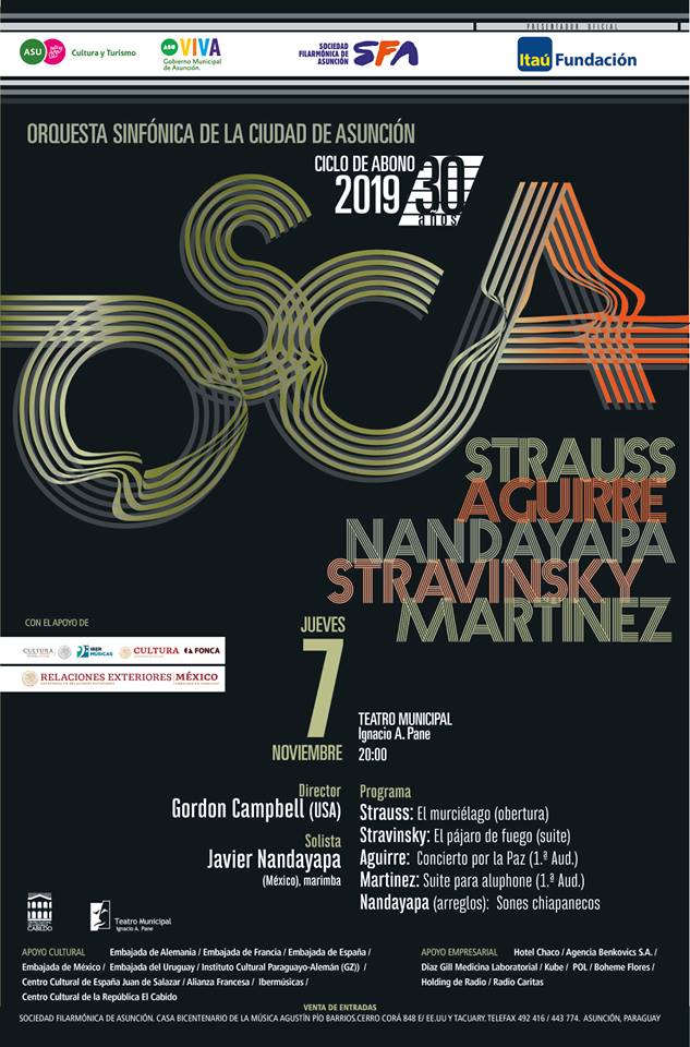 Asunción, IP.- La Orquesta Sinfónica de Asunción (OSCA) brindará este jueves su séptimo concierto de su Ciclo de Abono 2019, presentando “El Arte de la Marimba”.