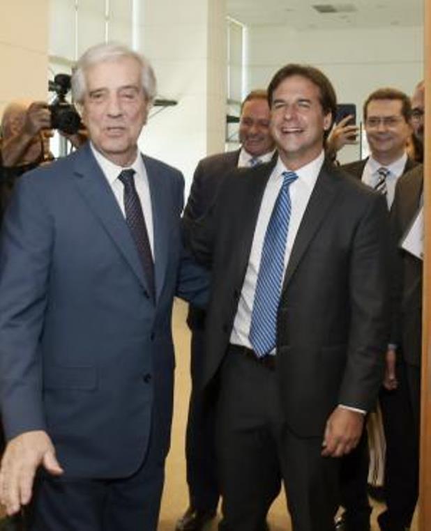 Pasadas las 10 de la mañana de este lunes, el presidente electo de Uruguay, Luis Lacalle Pou, llegó a la sede de gobierno para reunirse con el mandatario saliente, Tabaré Vázquez, dando inicio a la transición tras vencer en segunda vuelta el pasado 24 de noviembre.