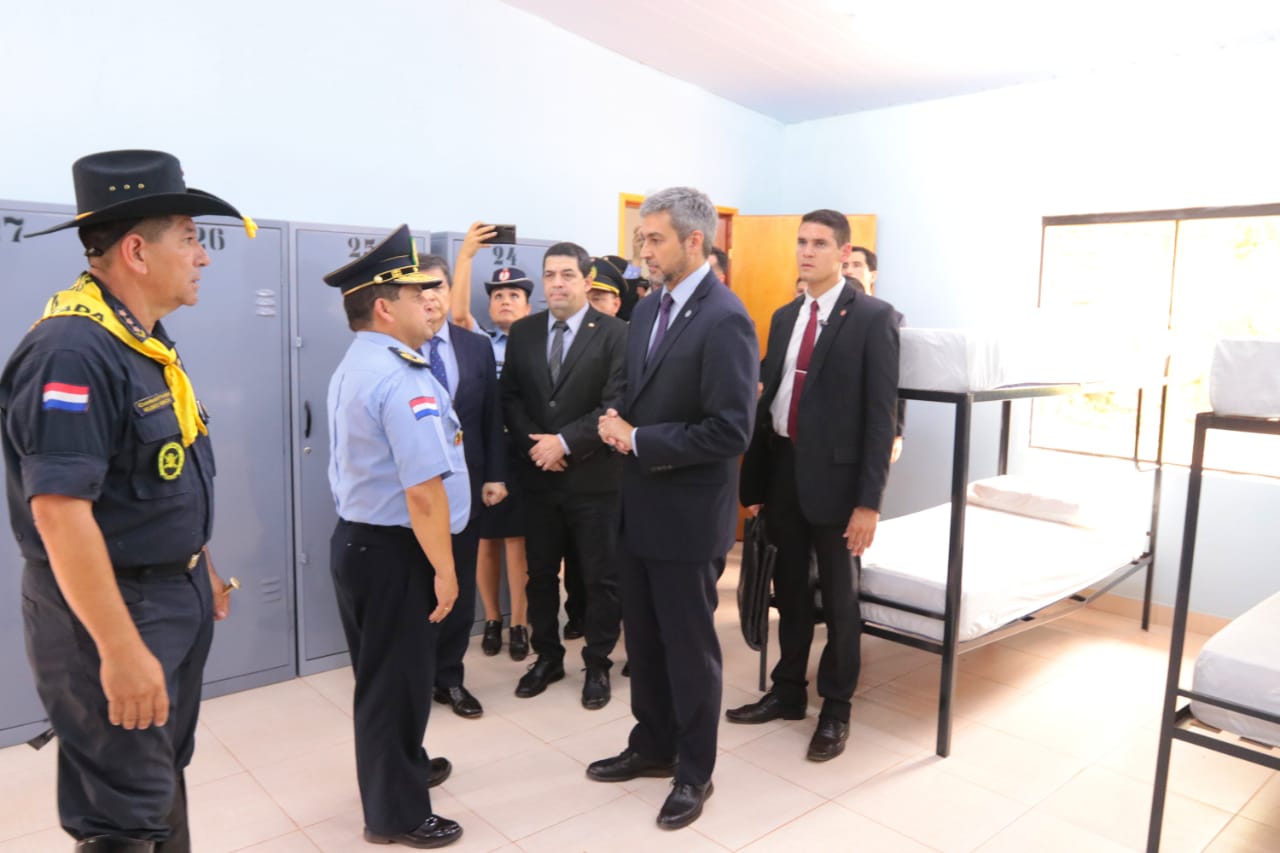 Asunción, IP.- Efectivos policiales del Grupo Lince y de la Agrupación Montada cuentan desde este lunes con nuevos espacios de alojamiento y entrenamiento que fueron inaugurados por el presidente de la República, Mario Abdo Benítez en Luque.