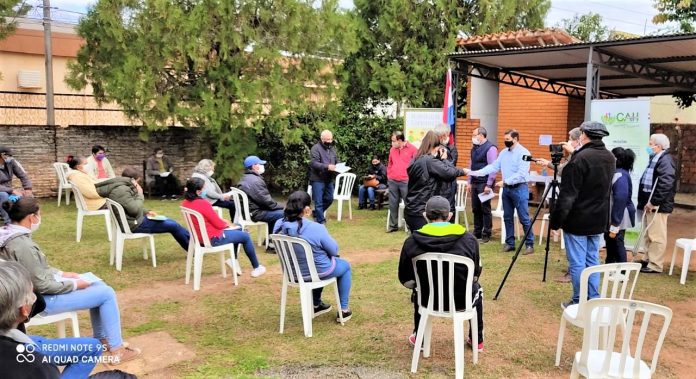 En Caazapá, 16 clientes del ente crecidito recibieron sus créditos blandos por valor de 82 millones de guaraníes. La entrega a dicha cantidad de beneficiarios se realizó en forma simbólica, a raíz de la pandemia, en el Centro de Atención del CAH en Caazapá del que participaron el presidente del CAH, Cesar Cerini y otras autoridades del CAH.