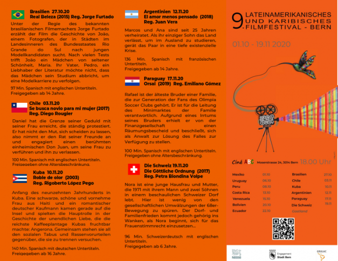 El festival proyeca películas de los países de Latinoamérica y el Caribe, una por día y con entrada gratuita en el cine ABC, Moserstr, siguiendo los protocolos sanitarios correspondientes.